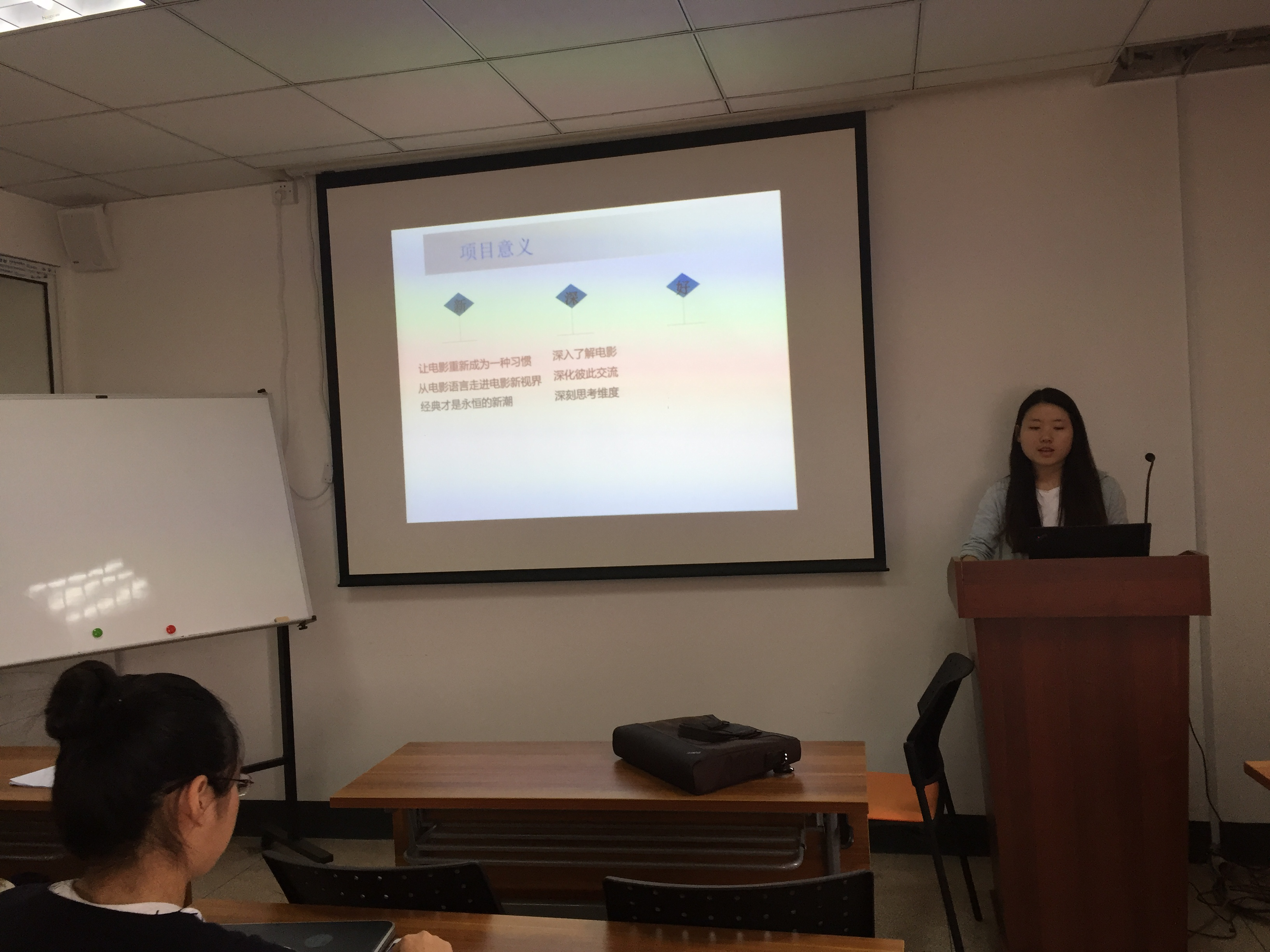 《浙大汉文化传播之“语伴”项目》的答辩同样受到了老师的认可,很有现实意义。项目最大的特色便是中外学生可以“一对一”式的合作交往,从而能够更加深入地开展各种文化交际活动。语伴之间比较固定,大家参与活动的方式比较灵活,同学们在开展活动的时候,既考虑到集体性质的活动,也安排了一些零散的活动,利于语伴之间的时间安排。随后《美在浙里—学术写作技能交流与提升计划》、《电影视听语言分析》等项目也依次进行了汇报,老师均提出了相关指导意见。