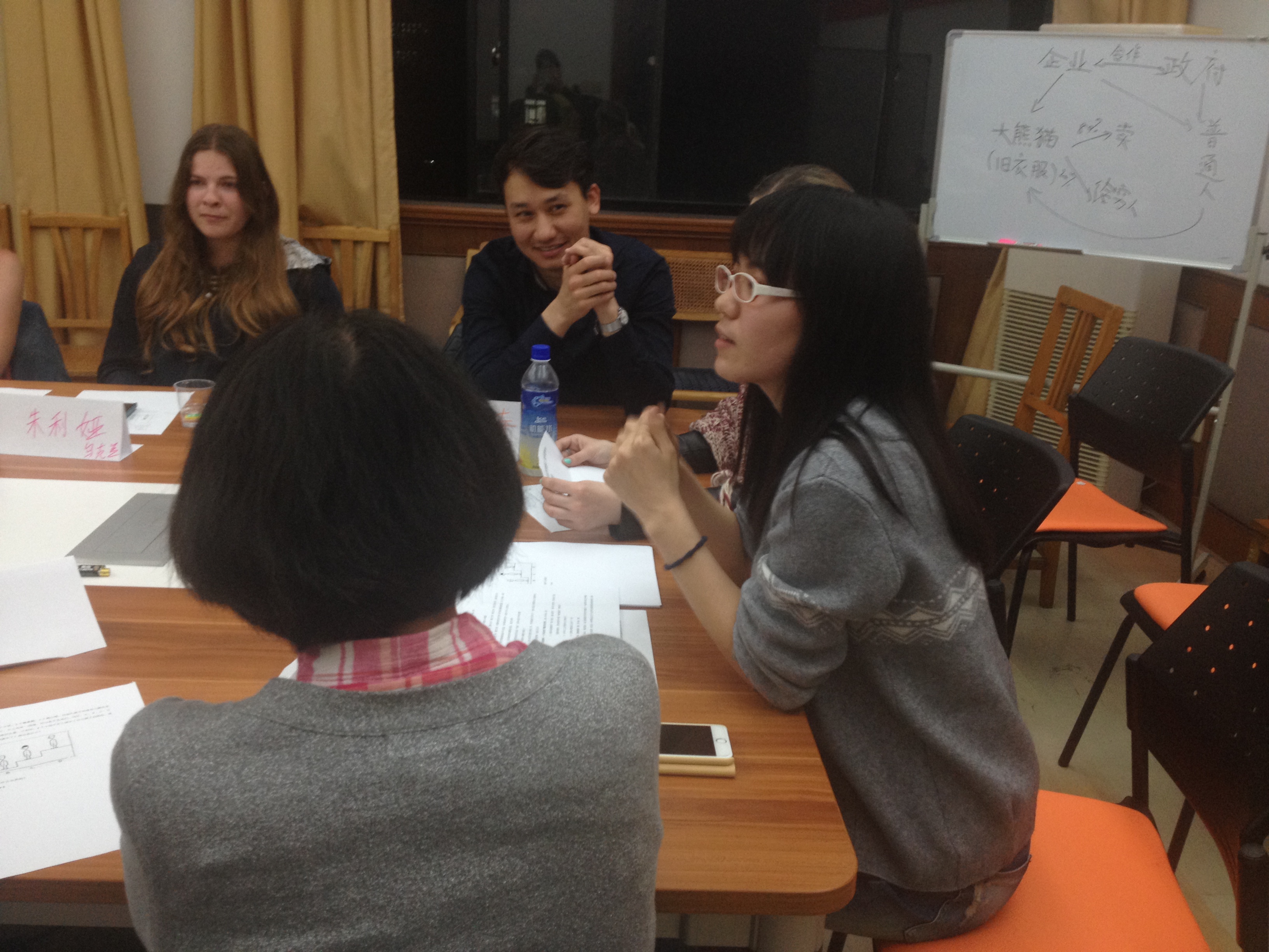 4月20日周三晚7点,高级汉语角在主楼511如期举行。本期汉语角由15级汉语国际教育硕士薛丽青和宋雪(俄罗斯)主持,主要围绕“中外教育问题”展开讨论。参加此次汉语角的,除了世界各国留学生,还有国际文化系张丽萍老师、刘颖老师以及在美国教育局工作多年的庄文仁老师。