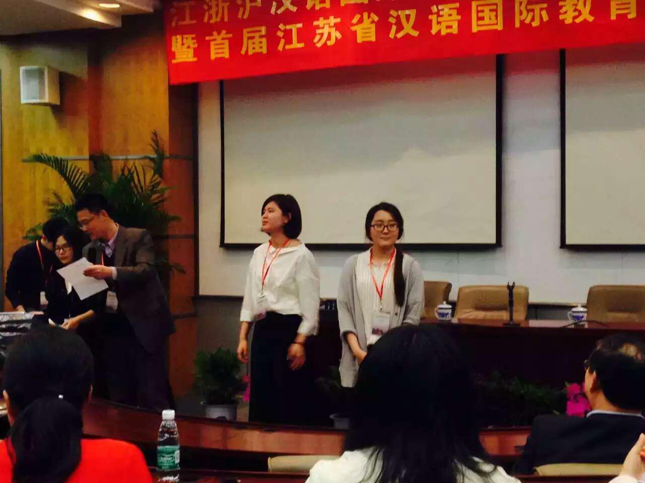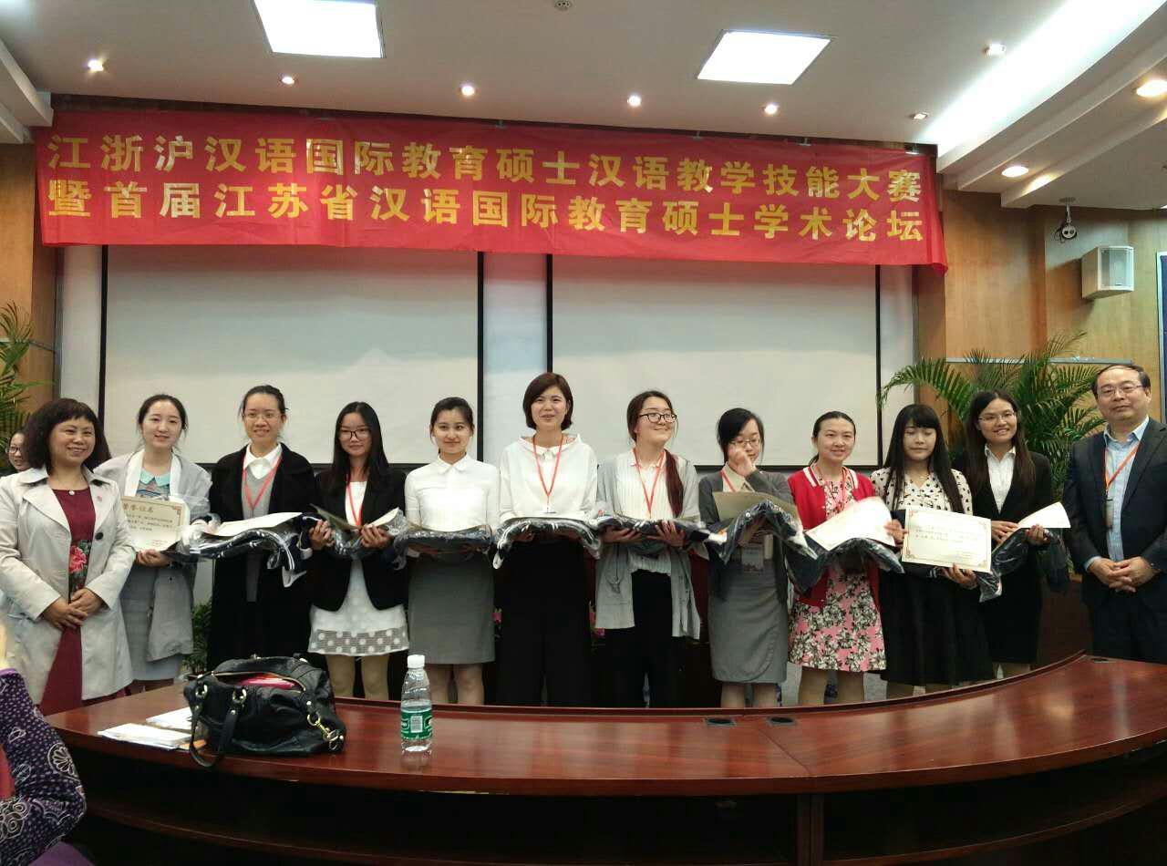 2016年4月23日,在南京大学隆重举行第二届江浙沪汉语国际教育硕士汉语教学技能大赛,包括南京大学、复旦大学、华东师范大学、上海交通大学等十五所高校的三十余名汉语国际教育硕士参加了此次比赛。我校刘颖老师带队,汉语国际教育硕士15级的两位同学参赛并喜获佳绩。其中来自韩国的李旼宣同学获留学生组三等奖,李玉爽同学获中国组优胜奖。