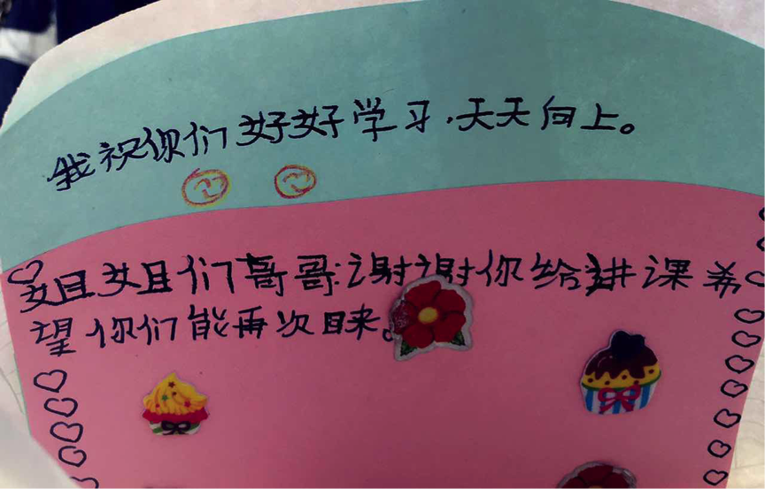 40分钟的时间很快过去,下课以后,孩子们一拥而上。有的围着老师询问各种问题,有的则把自己折好的小爱心、自己最心爱的小玩偶送给老师当做纪念,虽然相处的时间不久,但是浙江大学的代课老师们与孩子们显然已经打成了一片,这一群生活在大山间的孩子们有着最温暖的内心,都像是好奇的小天使。课程虽然结束了,但老师和孩子们都显得依依不舍,他们簇拥着老师,即使已经是午休回家的时间,都久久不愿离开教室,“那一刻千言万语或许都很难描述人内心的柔软吧”罗静宜说。