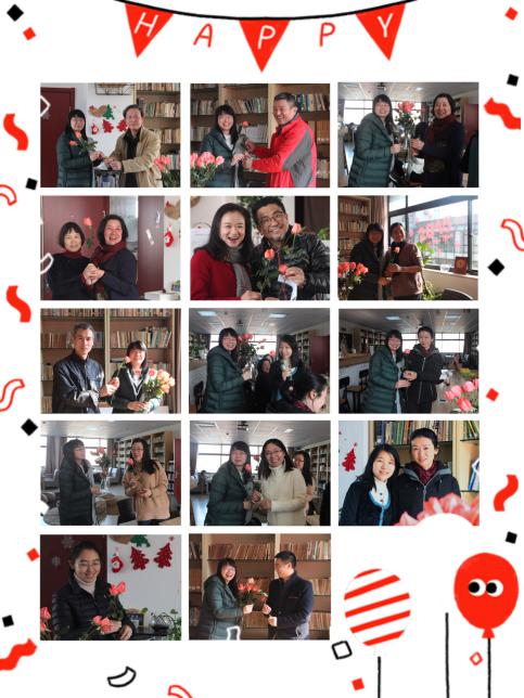 欢乐的生日快乐歌声中,每位“寿星”默默许下生日愿望,每位到场的老师都收到了娇艳的玫瑰花作为礼物,精致的生日蛋糕也分发到了每个人面前。只是再香甜的蛋糕、再美的花,也比不过每个人脸上那甜美灿烂的笑容。