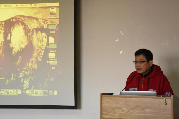 杨锦麟曾先后赴南极北极探险,在一次南极探险中经历了惊心动魄的风波。在乘坐冲锋舟登上南极一座小岛后,杨锦麟团队却发现面临危险而严峻的情形:返程的路已经被浮冰堵死。一行人被困在酷寒的小岛上,面临极寒、饥饿与众多生理困境,却只能原地等待救援。令杨锦麟记忆深刻的是,面临灾难之前人性一览无遗,原本生活中非富即贵的人们在骚乱中卸下伪装呈现出本来的模样。混乱与惊慌中杨锦麟挺身而出,呼吁所有人听从队长的话,稳定人心。在被困十小时后,挪威破冰船赶来救援。“这次难得的经历,是我人生高度的攀升。”杨锦麟将这一次南极探险经历做成视频,视频中他的积极乐观极大地感染了在座的同学们。