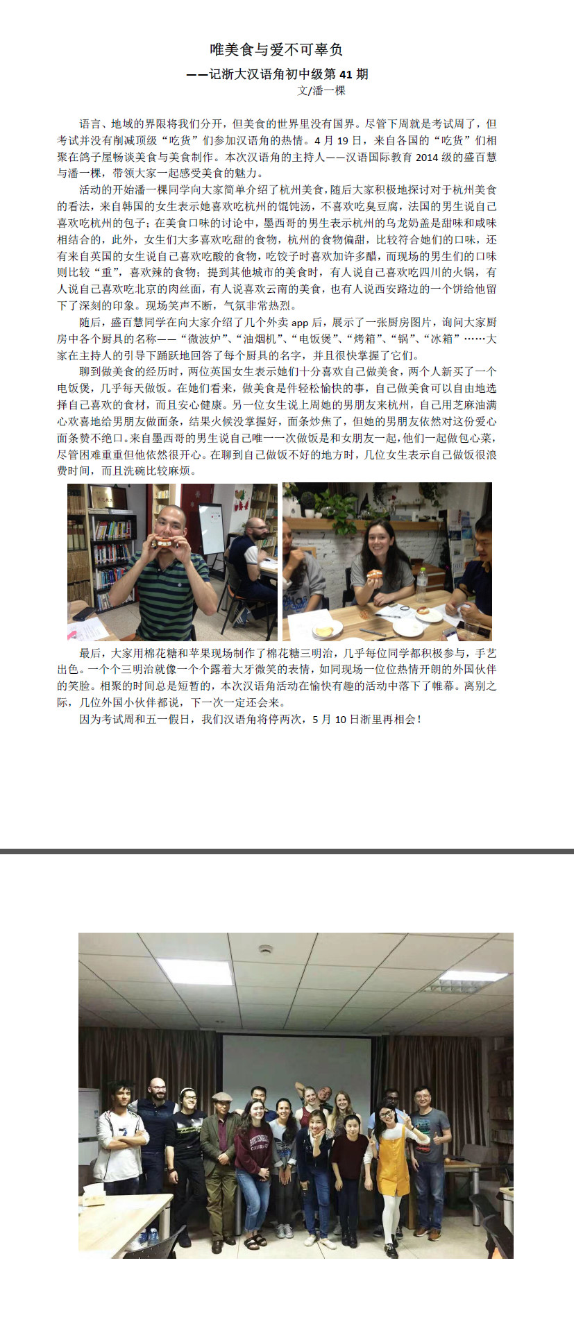 唯美食与爱不可辜负 ——记浙大汉语角初中级第41期