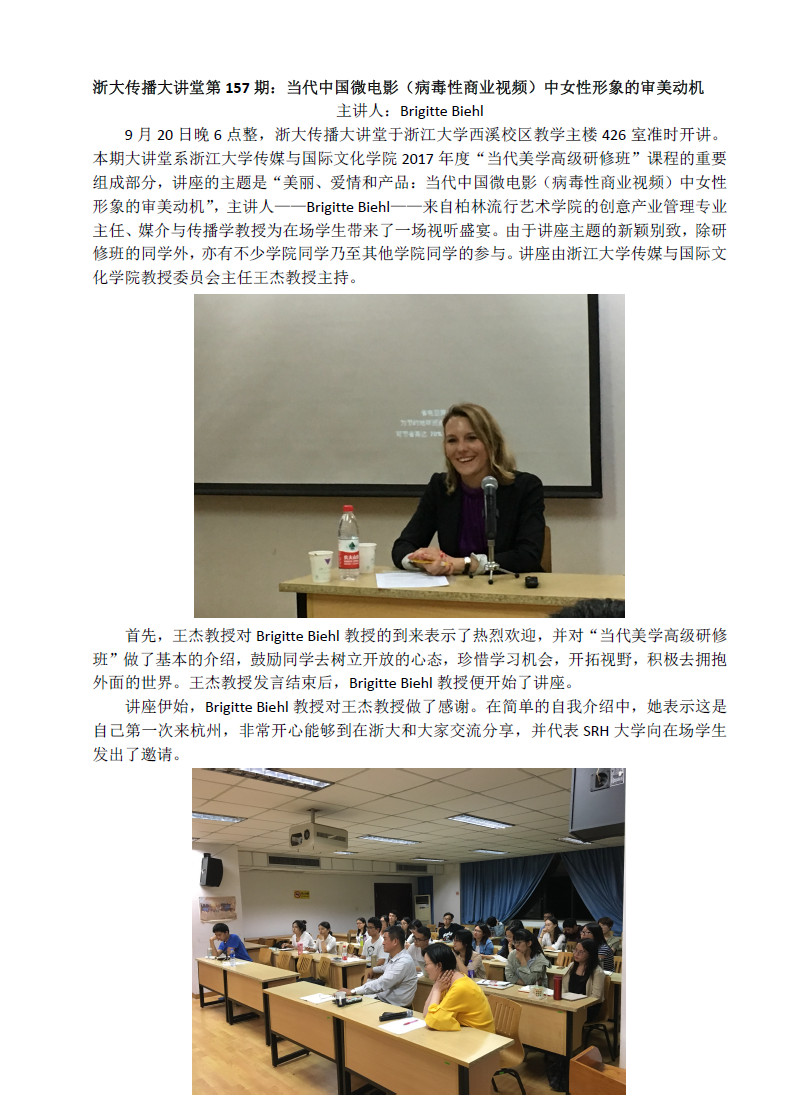 浙大传播大讲堂第157期:当代中国微电影(病毒性商业视频)中女性形象的审美动机