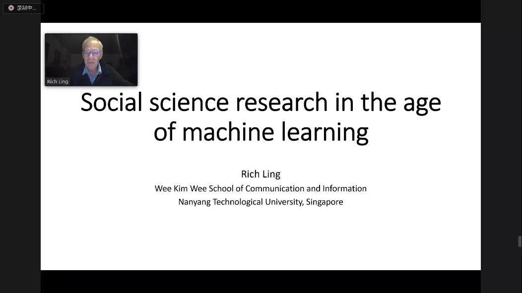 16日下午,南洋理工大学Richard Seyler Ling教授带来主题为Social Science Research in the Age of Machine Learning的学术报告。他围绕“机器学习如何影响社会科学研究实践”的问题展开讨论,沿着自然科学研究工具发展的历史脉络娓娓道来,他指出随着计算统计学的发展,其局限性也逐渐显露,而新兴的机器学习技术可能是社会科学研究领域新的“伽利略的望远镜”,AI也许是理解社会与社会互动的新工具,但这也要求我们重新审视与思考技术与社会的动态联系,以及机器学习为代表的新技术对社会科学研究的影响。