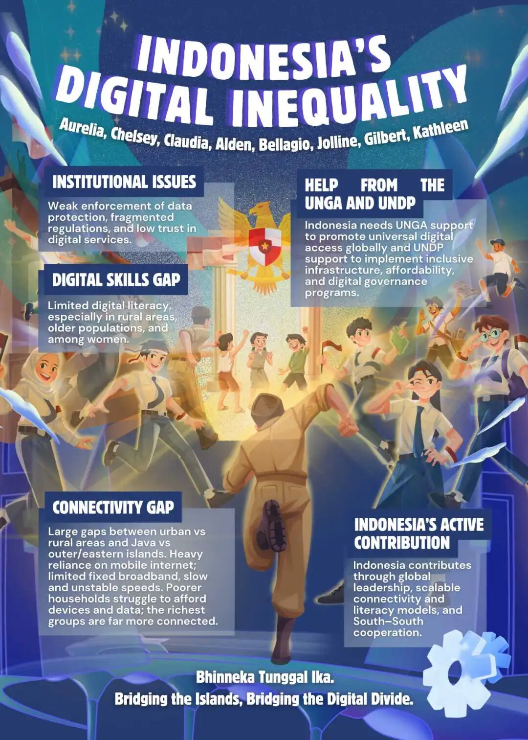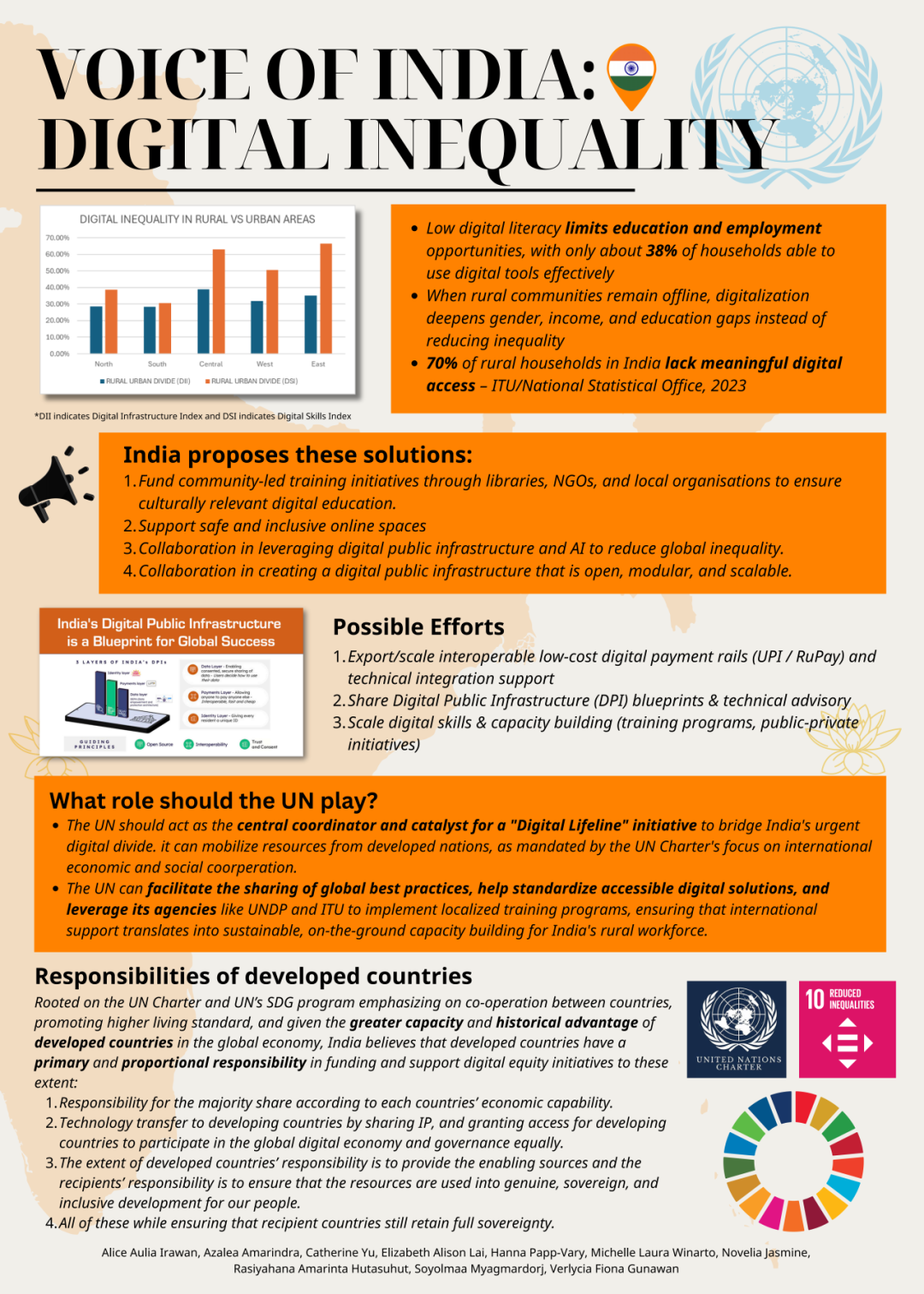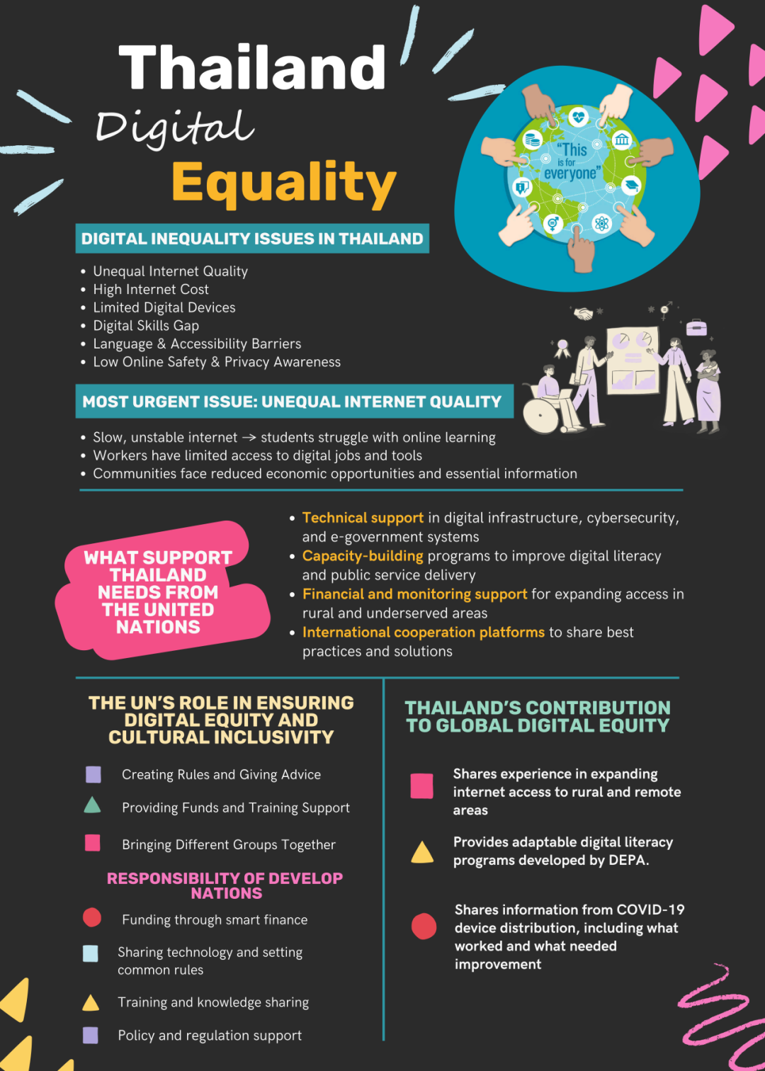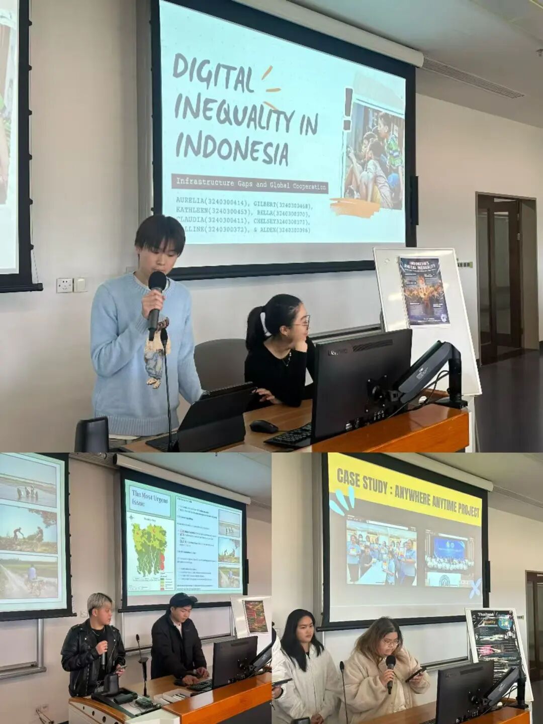 课堂上,学生们选取法国、克罗地亚、泰国、印度、印度尼西亚、美国、新西兰、阿联酋、孟加拉国九个国家,呈现了全球数字发展中的多维不平等现象。